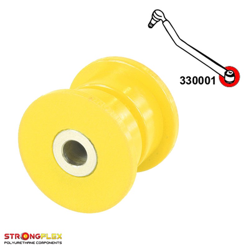Este casquillo solo está disponible en dureza 90ShA (amarillo) porque el casquillo de caucho original está hecho de un compuesto de caucho duro. El uso del casquillo de dureza 80ShA (rojo) reducirá la conducción del coche al casquillo de goma original.